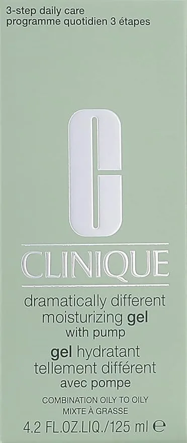 Dermatologist-developed formula combines oil-free hydration with skin-strengthening ingredients. Your daily moisturizer helps skin look younger, longer. Its the best moisturizer for Oily Skin or Oily/Combination Skin. Drier skins, try Dramatically Different Moisturizing Lotion plus . The secrets in the system. Our revolutionary 3-Step Skin Care System was created by a celebrated dermatologist. Its simple, customized and takes just three minutes, twice a day: cleanse with Facial Soap, exfoliate with Clarifying Lotion, moisturize with Dramatically Different Moisturizing Lotion plus or Gel. Design house: Clinique. Series: Dramatically Different. Gender: Ladies. Category: Beauty and Personal Care. Type: Skin Care. SubType: Moisturizer. Size: 4.2 oz. Style: CQDRDIMOG1. Barcode: 020714222857. Clinique / Dramatically Different Moisturizing Gel 4.2 oz. This item is only valid for shipment in the Contiguous United States.