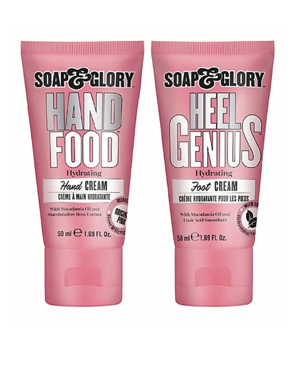 In this set of 2 includes Soap & Glory’s award-winning hand cream & foot cream. Both are formulated to hydrate, moisturize and nourish very dry skin. The foot cream is formulated with allantoin, macadamia oil, menthol, bilberry, orange and lemon fruit acid smoothers. The hand cream is formulated with with shea butter, macadamia oil, grape seed oil and almond oil. Dermatologically tested.